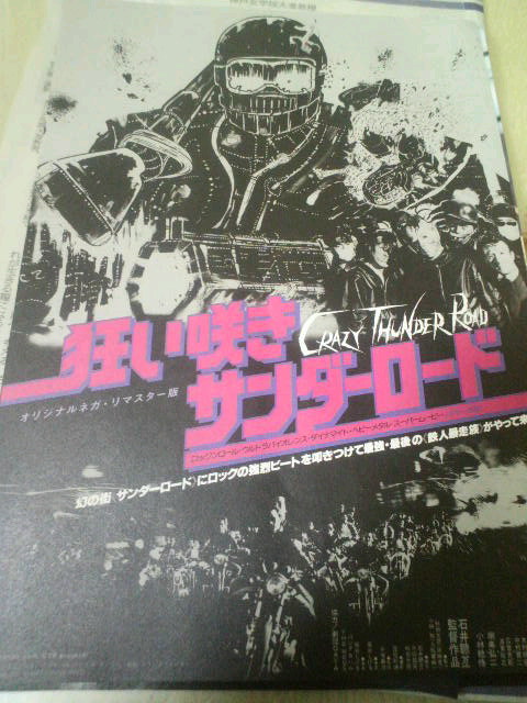 せっかく来たんだから、そのあと上映の『狂い咲きサンダーロード』も見ておかないと。こ発見されたネガをデジタル化した恐ろしく美しい16ミリ作品。ほとばしる暴力、とにかく動いていないと気が済まない、小さくまとまってられない、安定を良しとしない、そんなはみ出し者がはみ出して、はみ出して、最後に大爆発する。もう、何に怒っているのかさえもわからない、とにかくやってやろうじぇねえの! の精神で突き進む。スタッフもキャストも何かにとりつかれたように狂い、暴れているのが画面からも伝わる。リアルタイムでは見ていないけど、その異様さは大学生が見ておくべき映画ベスト10に必ず入っていた、と思う。桜もしょぼしょぼ、外は雨、そんなじめじめした雰囲気をぶち壊すパワーがあった。