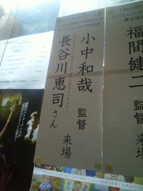 そして、先週末もみなみ会館で、マイクを握る。ウルトラ大全集『ウルトラマンゼアス2』上映前のトークショー。ゲストは小中和哉監督とスーツアクター長谷川恵司さんだ。実は小中監督は、自分が物書きやるきっかけを作ってくれた人、お会いできればぜひお礼を言っておかねばならないと思った人。あの時、あれがあってこうならなければ、みなみ会館でマイク握って人前で話したり、毎月怪獣新聞を書くことはなかったかもしれないのだ。