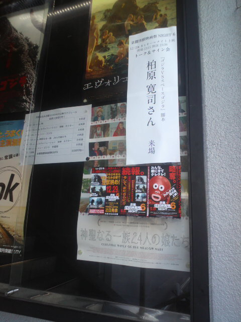 続いてタコラ、スペースゴジラの脚本家、柏原寛司氏のトークショーアンドサイン会。しかしここでサプライズゲスト、タコラ本人が登場! 劇場はサイン会にタコラ撮影会会場に! 想定外の列に、いつもの写真係になってしまった。ウルトラ大全集で培ったものは、トークスキルよりもスマホ撮影かもしれない。