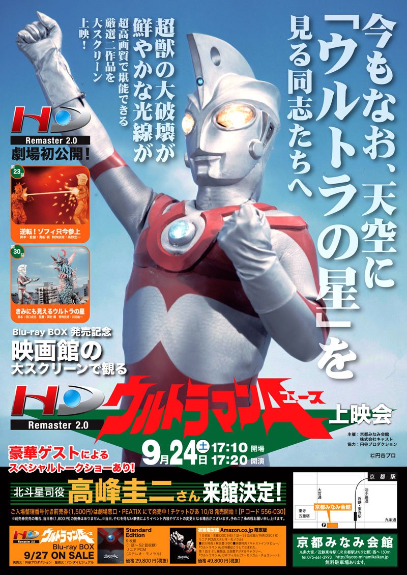× [PR]上記の広告は3ヶ月以上新規記事投稿のないブログに表示されています。新しい記事を書く事で広告が消えます。 恒例『超大怪獣大特撮大全集DX』に加え、今月からは『ウルトラ大全集』と称し、ウルトラ、作品を上映するという、さらに怪獣色が強くなる京都みなみ会館。大丈夫、他にも普通の映画やってるから。