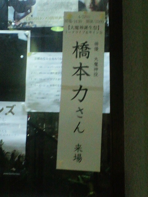 いつものようにうろ覚えで新聞記事書く分には楽しいイベントなのですが、橋本さんトークショーの司会を仰せつかることに。前回の田﨑監督に続き、二回目の司会、今回はキャスト社の中村社長と合同で、ということですがそれにしても緊張する。だって相手は大魔神ですから。下手なことを言うと踏みつぶされるのです。