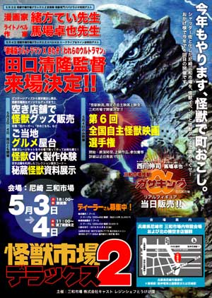 4月から怒涛の『俺でいいのか? 案件』もこれで終了。しばらくはつつましやかに普段の生活に戻れます、たぶん。 拙い司会につきあってくれたお客様に感謝です。 怪獣市場で買ったものあれこれ。 京都みなみ会館『特技監督中野昭慶映画祭NIGHT』だ。しかも今回は客ではない、『大魔神誕生祭』に続き、キャスト中村社長とともにゲストトークの司会を仰せつかったのだ。またかよ! まただよ! 本当に俺でいいのか?という思いは今でも俺にまとわりつく。俺もアメコミのヒーロー並みに抱える闇は深いのだ。とはいっても、請け負った仕事はやり遂げるプロフェッショナルの気質、を持っていたい。大魔神、ラジオ番組出演(実は出た。FM大阪、ゴジラ音楽祭の宣伝)に続くババタクヤ試練○番勝負、その3である。いったい何番勝負だ。