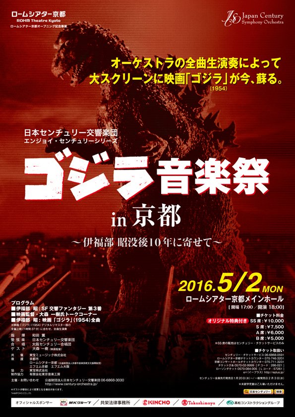 それが大魔神トークだったり、中野監督トークだったりするのだが、先日は『ラジオに出ろ』だった。いつもやってる放送されないラジオの事ではない。本物、放送されるラジオだ。なぜ自分なのか? 要は5月のゴジラ音楽祭の宣伝を頼む、ということだった、自分でよければということでラジオ局にお邪魔する。自分の事はさておき、ひたすら怪獣のこと、ゴジラ音楽祭の事を何とか。 で、宣伝したんだから、ということで5月2日、京都ロームシアターで開催のゴジラ音楽祭in京都へ。4kリマスター『ゴジラ』を上映し、音楽パートは生オーケストラというぜいたくなもの。