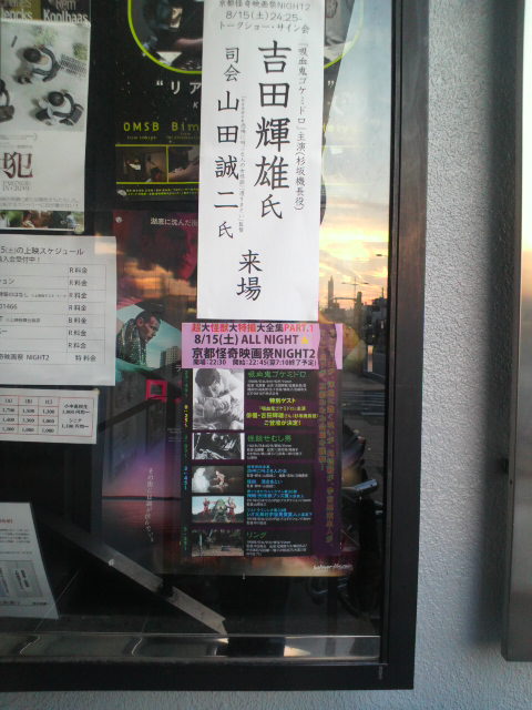 さらには来月の京都怪奇映画祭NIGHT2、9月からの超大怪獣大特撮大全集の告知も。まだ見ていないが、とにかく、頑張れ、ということか。 |
