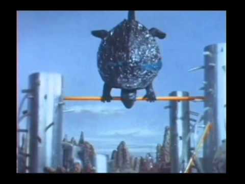 多才なギロンに対抗して、ガメラもゴーゴー踊ったり、鉄棒したり、高角度バックドロップかましたりの大サービス。ついでに器用に溶接します。