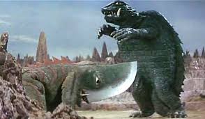 舞台が限定されているため、予算が……な感じもするが、そこはそれ、ギロンの魅力でアッピールしますよ。鈍重そうに見えて結構俊敏。ピョーンと飛んで、宇宙ギャオスを真っ二つ。ガメラが来るや、その硬い甲羅を叩き割らん勢いで何度も包丁をぶちかます。