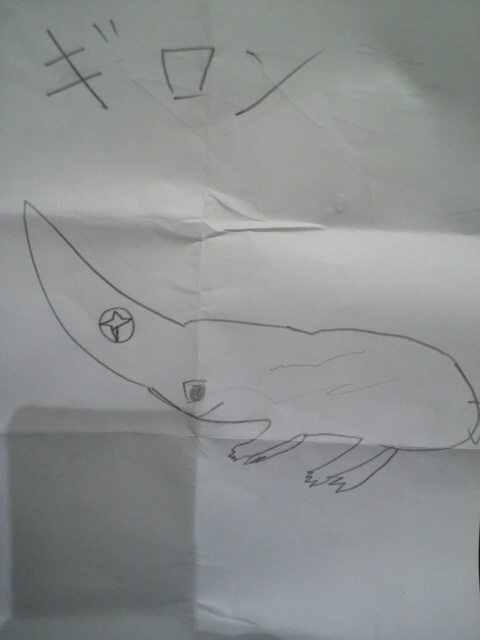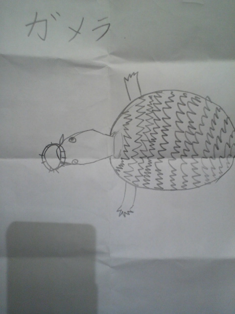 先週のみなみ会館二本立てに感化されたようで、娘がガメラとギロンの絵を描いてました。お手本もなく、よくかけました