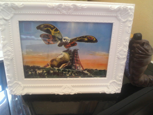 がっつりごってりと怪獣映画を堪能し、恒例のくじでは当たりのバイラスを引き当てた娘。それよりも、モスラのブロマイドが気に入ったようで、翌日には100均で額を買ってました。