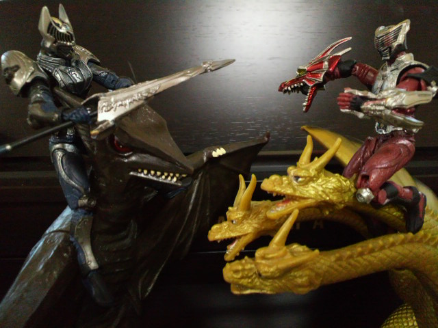 ・どうにもいかん、自分の本分はここなのだ、ということで、以下だらだらと書きますよ。 ・宇宙キター、DVDキター! 『仮面ライダー×仮面ライダー・フォーゼ&オーズ・MOVIE大戦MEGAMAX』に『てれびくん超バトルDVD』! 『MEGA MAX』の方は先月届いたのですが、以来家事の際にはBGVとして流すほど、面白い。 冒頭の世界中で戦う7人ライダーの活躍からハートをわし掴み、平成ライダー映画史上もっともスムーズにライダー同士が競演できた奇跡のような一作であります。 思えば昨年は今作含め、まあ、細かいことに目をつぶれば、1号2号リスペクト映画としては楽しめた『レッツゴー仮面ライダー』に、まさかの暴れん坊将軍とのコラボがまさに夏休み映画にふさわしいにぎやかさであり、キチンと本編とも連動していた『将軍と21のコアメダル』と、秀作だらけでした。今春の大集合映画までは。 てれびくんDVDは、その後日談とでもいうべき内容。まさか映画と連動しているとは思わなかった。映画で7人ライダーと競演した際、アマゾンにすっかり気に入られたフォーゼ。そうか、2人ともオリジナルの『友達のマーク』を持ち、友達を大事にする男同士だからか。 アマゾンで拾った謎のスイッチを届けに日本に向かうアマゾン。しかしそこに新怪人が立ちふさがり……という内容。とにかく、アマゾンが出ているというだけで申し込んでしまったが、内容もDVDならではの仕掛け満載で12分という尺ながら楽しめる。ニセアマゾンロケもあるぞ! アマゾンはちゃんとジャングラーに乗るぞ、若干粒子が粗い画質だったが。 ・さておもちゃ。 メンチ切りあうゴジラとガイガン。 前々回、特撮リボルテックガイガンを買った舌の根も乾かぬうちに。 ガメラを購入。 実際のスーツも小ぶりだが、これまたこじんまりとした感じ。四つんばいにさせると縁日で売ってる亀のように見える。 モンスターアーツゴジラと戦わせる。 ゴジラと並ぶと、その身長差は歴然。まるで漫才コンビだ。 ・空にそびえる鉄の城、スーパーロボット超合金真マジンガーZ。 ゴジラさんと。 そしてその舌の根の乾かぬうちに。 同シリーズのグレートマジンガー購入。 Z買ったら、グレートも欲しくなるのが心情でしょう。 しかし、これは近所のショップに出かける際子供らと『グレート欲しいねえ』といってたら本当においてあったというまるで俺のために用意してくれたような一品。しかもべらぼうに安かったので買うしかなかった。 二大ロボ、がっちり握手の図。 映画『グレンダイザー対グレートマジンガー』の1コマ風に。グレンダイザーは海洋堂リボルテック。しかし、グレンの方が小さい。 そこで、エグザイル風に並べてみる。もう少し数があれば様になったと思う。 ・オマケ。 最近の博物館は館内解説にPSPを使っているのだ。これは先日の民族博物館のもの。 『ガメラ対ジャイガー』にこんなの出てなかったっけ? シンドバット紹介のコーナーではきちんと映画版にも触れられていた。