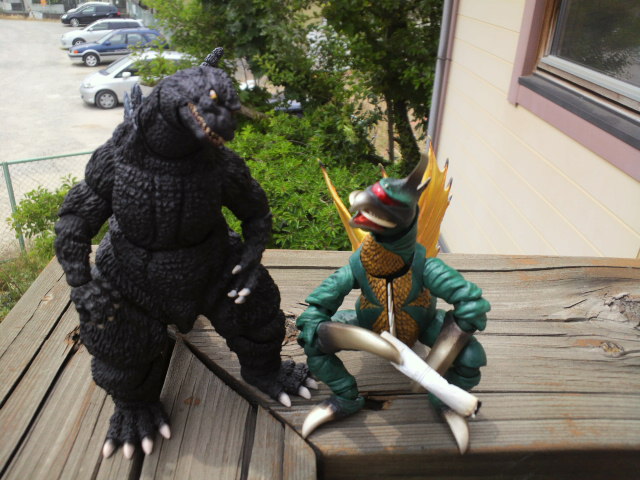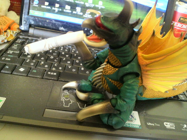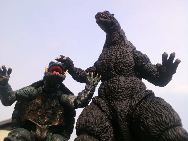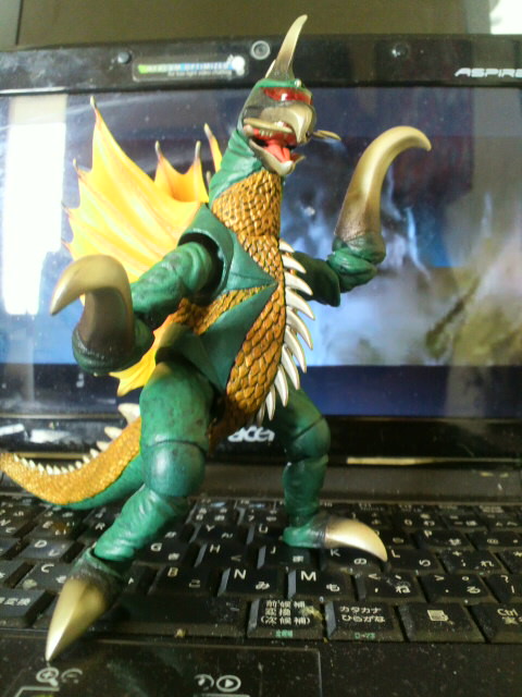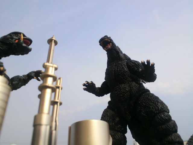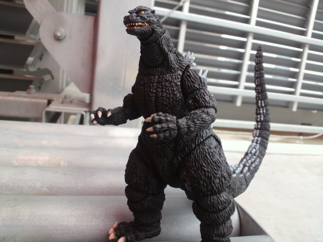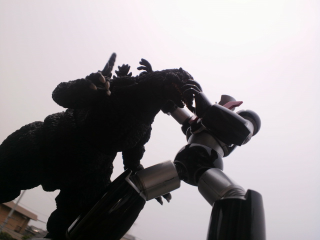 ◎久しぶりに日本橋に行き、怪獣フィギュアに囲まれながらワーキャーと、発狂寸前まではしゃぐ。箱を眺め、棚に戻し、眺め、戻し、いわゆる『買うた止めた音頭』をして、日ごろのストレスを発散。安いね。で、結局バンダイ『モンスターアーツ・ゴジラ』を購入。普段から海洋堂リボルテックで遊びなれたものとしては、派手な可動ができないのが残念。これは『忠実に撮影用スーツの可動を再現した』ものであるからか。