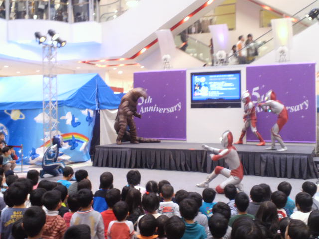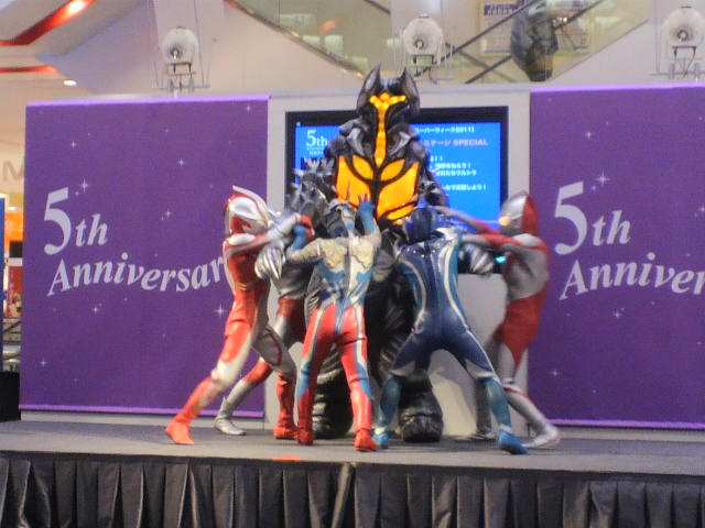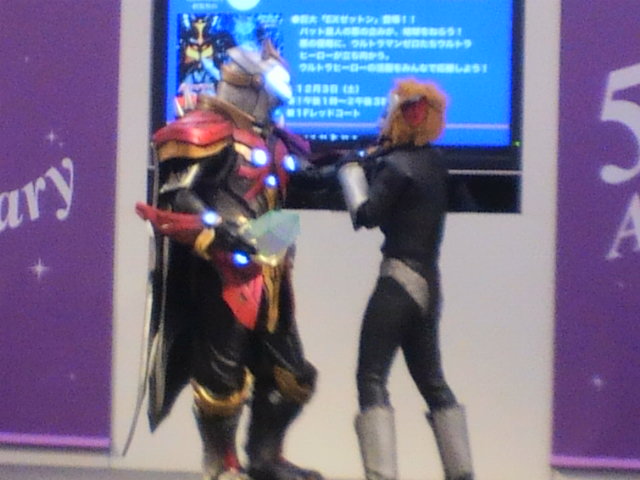 それでもウルトラは続く。 先週末、久々にウルトラマンショーを見にアリオ八尾へ。 年の瀬と、オープン五周年が重なってか、イベントが目白押し。 国産車唯一のボンドカー、トヨタ2000GTの展示や、人食い熊グルーミーがやってきたりとにぎやかだった。 ウルトラも こんな感じでスーツやジオラマと、ショーだけでなく、展示イベントにも力が入っており、見る前からテンションが上がってくる。 子供といい年した大人でごった返す、一回広場。ショーの内容は簡単に書くと『バット星人が宇宙人の子供を使って恐怖心を集め、新たなゼットンを作ろうとする。それを阻止せんとするウルトラマンたち』で、この時期の八尾のショーは映画に続く形になっており、バット星人は映画で使ったスーツをそのまま持ってきた模様。 しかし、かなりかっこよくなってますな。戦隊の悪の幹部みたい。 昔はこんなの。 これでもウルトラの星に艦隊攻撃かけたり、MAT基地を壊滅させたりとかなりの実力者であります。まあ、連れて来たゼットンが こんな感じなのは、まあ、仕方ないとして。 登場するウルトラマンは帰ってきたウルトラマンに初代ウルトラマン、メビウス、ヒカリに、ゼロの五人が登場。帰ってきたウルトラマンはかつてバット星人と戦った経験からメンバーに選ばれたのか。 バット星人の手下で、チャラくて厨ニ病気味のマグマ星人。いうことは大層だがウルトラにやられると『あのクズが、クズの癖によくもボクを……』と、よくほえる。 マグマに使い捨てにされる哀れなテレスドン。劣化が始まり、もうすぐデットンになる予定。 タイでの悲劇再び、マグマに見放され、ウルトラさんの集中攻撃を受ける哀れなテレスドン。 バット星人はようやくキレイなゼットンを手に入れ、ウルトラさんに差し向けます。 ゼットンは子どもの恐怖心を増幅させたエネルギーで何度倒されても甦るのです。そう、恐怖心を克服し、ウルトラマンを応援しよう! うまい台本やね。ヒートアップする会場! バット星人に連れまわされ、脅され続けた(ひどい)宇宙人の子供も勇気を振り絞る! だが時すでに遅し、バット星人はすっかりヘタレになったマグマ星人をくびり殺し、その際の恐怖心でゼットンの改良化に成功していたのだ! EXゼットン登場、デザインだけでなく、図体もでかい! しかし、バット星人はゼットンにこだわるなあ。養殖でもしてるンかな。 巨大なゼットンに押される五人のウルトラマン。しかし、会場のちびっ子の応援が続く限り、ウルトラマンも何度でも甦る。ウルトラマンは死なん! EXゼットンを倒すものの、バット星人は取り逃がしてしまう。これが映画のハイパーゼットンにつながるわけだ。うまい台本やね。いつもながらの派手なアクションと、ひねった台本に大満足。さて帰ろうかと駐車場に向かったら、今度は店内でいきなりチアリーディングの実演が始まった。 どうなってるんだ、八尾? PR