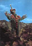『僕はー日曜日ーがないー♪』と歌っていたのは『グレートマジンガー』の兜シロー君。お父さんが多忙で日曜日も遊んでもらえない気持ちを切実に歌った『シローの日曜日』という歌の一説だ。俺も昨日は午後から仕事でした。分かるぜ、その気持ち。 昨日、職場で(これがもう、深夜まで……ってあまり介護関係の内情を書くと、それこそやばいので。まあ、夜勤ですよ)BS11で放送していた『ウルトラマンA タイムマシンを越えてゆけ!』を見た。なんだよ、たまに見たらこれかよ、という感じ。登場する超獣はダイダラホーシ。日本の昔話に出てくる巨人から取ったのだが。名前と顔が一致していないと申しますか。間抜け面に長い首、寸胴、頭には潰れた脳みそが乗っかったような装飾。そういうパーマのおばちゃんいるよね、という感じ。写真どうぞ、こいつ↓。 『どこが巨人やねン!』と突っ込まざるをえない姿。 お話は時空を超えて跋扈する超獣に翻弄されるTAC、そして舞台は奈良時代に移り、近代兵器のTAC対刀剣類の地方豪族(『戦国自衛隊』のようだ!)、そして大仏建立(ちゃんとミニチュア作ってますが、奈良の大仏なのか?)のタイミングを見計らうように現れるダイダラホーシ、噴火する火山(奈良に火山があったのか?)……と、書いているとウルトラで伝奇物をやるというすごく意欲的な作品のように思われるかもしれない。 でも、なぜ奈良時代からやってくるのか? 巨人伝説と超獣との関連性、大仏と火山は物語に必要だったのか? など、惜しいところが多数。 まあ、結局エースが超獣を倒し、奈良時代に残されたTAC 隊員を現代に連れ戻すという……シナリオでは『これがやりたいんだよ!』な部分がそぎ落とされたような感じ。でも嫌いじゃないです。タイムとラベルものとウルトラをあわせた異色編だと思います。でも、当時は怪獣番組粗製濫造、円谷も迷走していたのかああ、と思ってみたり。 オープンのあおりで逃げるダイダラホーシを捉えたカットは結構斬新に見えました。不細工やけど ◎ 劇場でこれ聞いた時は画のかっこよさと相まって体が震えた。