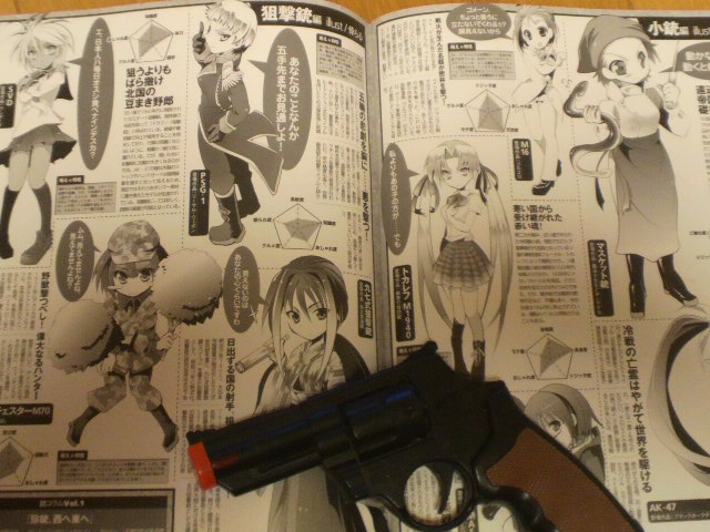 信じようが信じまいが……のフレーズですっかり市民権を得た感のある『都市伝説』という代物。『乗せたはずがいつの間にか消えていたヒッチハイカー』『いくら走っても燃料の減らない車』『ベッドの下に潜む片腕の凶悪犯』等々、『そんなバカな?』と思いつつもどこか信じてしまう噂話がアメリカには数多くあります。日本では『口裂け女』『人面犬』『地図にない村』などが有名どころだと思います。 そして本題。 二次元でも三次元でも可愛い女の子は何でも載せちゃうというコンセプトが、このカテゴライズされた世の中では異端であり、SF特撮雑誌でありながら『マグネロボ ガ・キーン』や『破裏拳ポリマー』を特集した昔の『宇宙船』のような、ごちゃ混ぜのカオス感が心地いい竹書房の雑誌『特冊新鮮組DX』 改め『TOP YELL』 10月号で『萌える武器大全』という記事を書かせてもらいました! 三国志、はたらくくるまに続く第三弾、今回は『銃』、名づけて『モエルガン』! 銃を構えた女の子ではなく、銃器類を女体化、言われなくっちゃ誰か分からん! ホラ、初代のメガトロンもロボ体型から銃にトランスフォームにするあのニュアンスで。どのニュアンス? 銃器のスペック、レビュー等を参考に女体化しております。今回はイラストが先にあったので、それがありがたく、そこからイメージを膨らませて書きました。 趣味に走ると007とマカロニとダーティハリーだらけになってしまうので、その辺はバランスよく書いたつもりです。 誌名も変わり、今後もこのシリーズを続けらればいいな、とは思うのですが、どこに行っても売ってない。 ネット上でも『やっと買えた』『○件まわってやっと購入』という声と『どこにいってもない』『見つからない』と、意見が二つに分かれており、まるでUFOかUMA のような雑誌であります。 俺のところにもまだ見本誌がきていないのでなんともいえません。ひょっとしてそんな雑誌存在しないのでは? 俺も何軒か探しましたが一向に見当たらない。代わりにポパイ編集の『仮面ライダーコレクション』を買ってきました。あぁ、フォーゼ。 ひょっとして……。 俺は存在しない雑誌に記事を書いたのか?(そんなことはない) 未来、もしくは異次元からの原稿依頼だったのか?(そんなことはない) おぉウルトラQの『あけてくれ!』のようだ。俺はこの先、南海高野線に乗って異次元に連れて行かれるのではないか?(ない) 次があれば何しよう? そろそろ寿司ネタの女体化やりましょうよ。