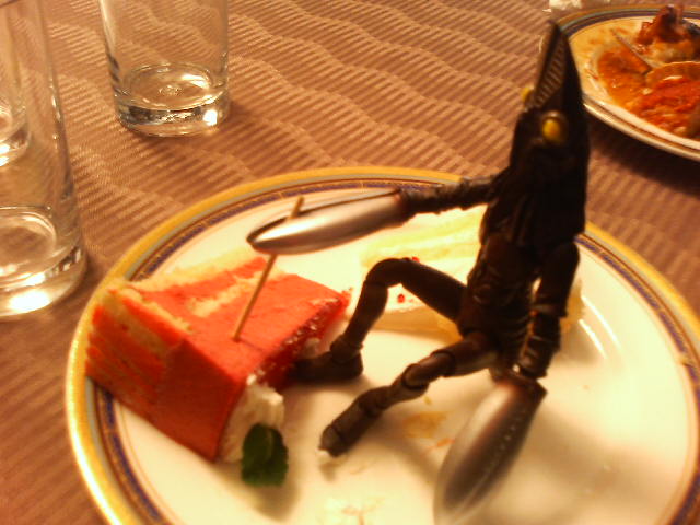 写真はパーティーの模様。こんなところにまで怪獣を連れてくる人間をみんなどう思っていただろうか。