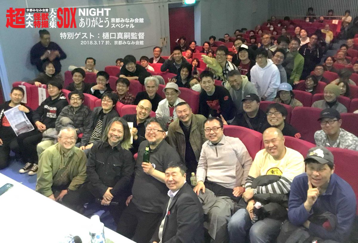 深夜に大阪を出て高速道路をひた走る。静岡は長い、遠い。夜が明けて富士山が目の前に現れたときはちょっとした感動であるが、頭の中は日本沈没とかスペクトルマンのバクラーのことでいっぱいだった。晴天に恵まれ、まるで書き割りのような富士山だった。 東京について、まだ時間があるとのことで、日比谷のゴジラ像へ。それにしても人が多い。さすが首都。シンゴジラをモチーフにしたゴジラ像は東宝のビルをバックに天高く吼えておりました。 会場は千駄ヶ谷のレンタルスペース。駅で言えば原宿が近いとのこと。 いざ開場すると、列を作って予約品や商品を買い求めるお客様たち。 こちらも売り子になってうろ覚え本をアピールするが、やはり、京都以外では弱いか。それでもそこそこ売れたので、よくわからずに買ってくれたお客様に感謝。 ほとんど会場を出ずに、なんとか終了。キャストさんの商品はほとんど売れてしまった、すごい。 5年ぶりの東京は何となく、密度がある街、といった印象。小さな土地に人と建物がぎゅうぎゅうに詰まっているという感じでした。 そして会場を片付けてその日の夜に出発。帰り道も静岡は遠く、長かった。 終わるんだけど、まだまだ終わらない京都みなみ会館。先週のオールナイトに続いて、先日は爆音上映枠での『キングコング対ゴジラ』デジタルリマスター版上映。今回は超SDX枠ではないが、この場所で上映する最後の怪獣映画。 駐車場から、映画館の音が漏れて聞こえる。それほどまでに爆音というのはすさまじいものか。階段を上ると骸骨がお出迎え。これはカナザワ映画祭のギミック上映に使われたもの。この日は満員御礼、ロビーには人があふれかえり、熱気がすごい。 超SDXのキャスト社の物販も少々。もうロビーで怪獣グッズを売る光景もしばらく見れないのか。 怪獣映画のストロングスタイル、プロレスを意識した日米怪獣対決にエコノミックアニマルと言われていた日本のサラリーマンのドタバタをミックスすることで全2作とがらりと作風が変わりつつも、以降の作品に大きな影響を与え、怪獣対決もののフォーマットを築いた『キンゴジ』については、さんざん語られてきたので、ストーリーに関してはここでは割愛。とにかくデジタルリマスター版は奇麗、美麗で華麗。完全版DVD、ブルーレイは発売されているものの、記憶に残っているのは、16ミリプリントをつぎはぎしてところどころ色味がおかしいVHS版なので、その淀みないつながり方に驚いてしまう。『昭和の色』というか、当時の色合いがそのまま出ている、という印象。そして何よりも爆音ですよ。オープニングの♪ドンドンドンドンという太鼓の音で場内の空気がびりびりと揺れる。足の裏から振動が来る。爆音はただ音が大きいというだけでなく、背景の細かな音も拾って引き延ばしてくれているので、とにかく情報量が多い。ゴジラとコングが吼えるたびに空気がしびれる、伊福部メロディは足から来る。何もないシーンでも足元がぶるぶると揺れるので、すげえと思ったら、隣の人の貧乏ゆすりだった。どこまで足広げてるんだ。わかっていてもクライマックスの富士山対決はゾクゾクとし、最後には爆音にも負けない大拍手。 もうここで怪獣映画が見れないのか、としんみりしたのは帰宅してから。とにかく上映中は興奮しっぱなしの爆音上映でした。もし次があるなら佐藤勝サウンドが炸裂しまくる『ゴジラ対メカゴジラ』か、とにかく騒々しい『ゴジラファイナルウォーズ』を爆音で見てみたい。 外の掲示板にはもう、次の映画のポスターはなかった。そして映画館の思いでのボールペンとブロマイドセット。終わるけど、まだ終わらない。最終日まで、みなみ会館にお世話になります。 いよいよその日がやってきた。京都みなみ会館、現場では最後の超大怪獣大特撮大全集SDXオールナイト。『連合艦隊』『ゴジラ』『シン・ゴジラ』の会議だらけのヘビー級3本立て。いずれも戦争、怪獣という国難を前にした群像劇で、3本ともそれぞれ共通項があるような、ないような。 最後にふさわしいゲストは、『シン・ゴジラ』の樋口真嗣監督。 本当は中野昭慶監督と昭和、平成Wゴジラ監督の予定でしたが、中野監督の体調不良につき、今回の来場は中止になりましたが、みなみ会館再開の際はぜひ来ていただきたいものです。 3年間ほぼ毎月書いてきたうろ覚え新聞も今回でいったんお休み。なのでここでの思い出に、入場時に新聞を配らせていただきました。最後まであきらめずにやろう。 みなみ会館のお向かいで火事が起こり、救急車や消防車がたくさん駆けつけるという中行われた樋口監督トークショーは捧腹絶倒、その後のサイン会もスムーズに進み、いよいよ『連合艦隊』へ。大スクリーンで見る戦艦大和の最後はかなりの迫力でした。『84ゴジラ』では映写トラブルもありましたが、それすらもイベントに変えちゃうお客様の温かさ。ちょっと時間も押して『シン