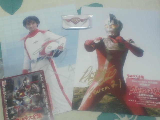 そんな中、先日はウルトラ大全集SPナイト2。昨年夏に行われたウルトラオールナイトの第2弾。今回はウルトラマンオーブ最終回2本に『ウルトラマンコスモス2・ムサシ少年編』『ウルトラマンティガ&ダイナ』の劇場作品2本。そしてゲストはオーブメイン監督の田口清隆さんに、オーブのライバル? としてエキセントリックな演技を見せてくれたジャグラス・ジャグラー役の青柳尊哉さん。 チケット完売、補助席券も残りわずかという大盛況っぷり。そして入場者には缶コーヒーが手渡される。これはジャグラス・ジャグラーが劇中で何度か口にする『夜明けのコーヒーを一緒に飲みたい』に引っ掛けたもの。さすがに夜明けとはいかないまでも、夜更けのコーヒーを飲んでいただこうという趣向。 まずはオーブ『復活の超大魔王獣』『さすらいの太陽』の最終回前後編上映。この時、こっそりゲストのお二人は客席へ。上映終了後、ゲストお二人のトークショー。 青柳氏の乾杯の音頭で、缶コーヒーを飲む。トーク慣れしているお二人と、司会の島崎氏の巧みなリードで会場は爆笑の渦。隣の青柳氏の口調がだんだんジャグジャグになってくる。途中で青柳氏の『ガチャガチャ』、田口監督『女兵器701』にウルトラマンネオスが登場する台湾のバンドMAY DAYのPVの短編3本を挟み、トークは終了。特に3本目はなかなかスクリーンでかからない一本。テレビとは違ったウルトラマン対バルタン星人の戦いっぷりとドラマチックな構成はかなりの見応え。トーク終了後はサイン会へ。この時すでに深夜2時を過ぎていた。お二人の迅速な対応で、サイン会もつつがなく終了。サービス精神たっぷりのお二人に場内も大満足だったのでは。 続いてコスモス2、ティガ&ダイナ上映。公開当時も上映館数が少なく貴重なコスモス2ムサシ少年編に、テレビシリーズの延長とはいえ、劇場映画並みのクオリテkィを見せてくれるティガ&ダイナ。公開当時はティガ復活のシーンで涙を流しそうになりました。 そしてロビーを埋め尽くさんばかりの圧倒的な物販軍団。 全プログラムが終了するころ、外はうっすらと明るくなっていた。お客様の中には夜明けのコーヒーを飲む人も。大盛況に終わったウルトラナイト、次回は3月11日、いよいよこの場所では最後のウルトラ大全集。正義の扉を開くもの、ウルトラマンネオス京都に出現。その時までdon't give up、don't stopでいきたいと思います。