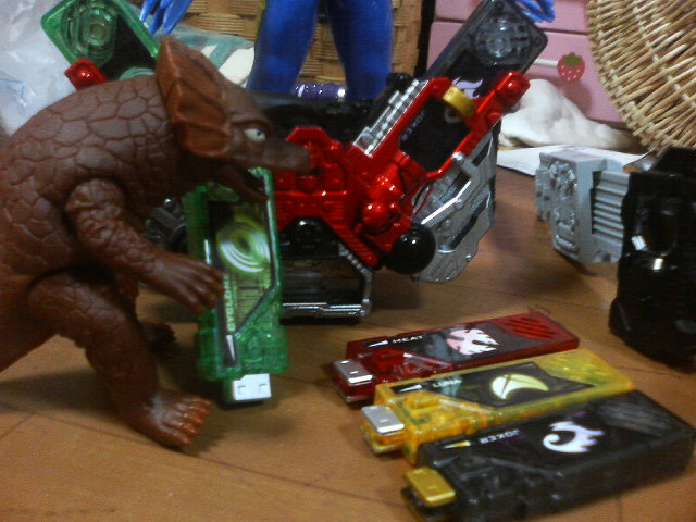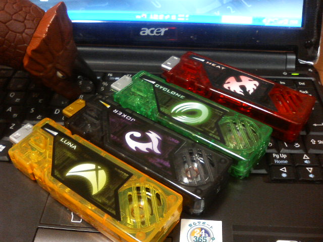 『月亭八光、八方の息子だ!』 関西の人でウルトラ映画見てないと分からんようなことを。 今日はクリスマスイブですよ。 イエスキリストの誕生日をみんなでケーキ食ったりご馳走食ったり酒飲んだり、いちゃいちゃする日ですな。それはさておき、サンタクロースっているのでしょうか。俺、結構『マジンガーZのジェットスクランダーのほうが欲しい』と口に出しているのですが、果たして、その思い届くかどうか。 そんな今日、来年のために原稿を書いて送って、イブの日なのでトイザラスを覗いてみると、やはり、というかなんと言うか仮面ライダーWのコーナーは壊滅状態。関連商品で言えば、スカルのソフビしか残っていない状態でしたよ。 そういえば今朝の『とくダネ!』で『今年のヒット商品』特集をやっていて出演者も個人的な今年のヒット商品を上げていたのですが、みんな家電やファッションを取り上げているのに笠井アナだけは一人『仮面ライダーW・デラックスリボルギャリー』を推してましたね。今年のプレゼントでしょうか、果たして無事確保できたのでしょうか、笠井アナ。 おそらく明日の朝 『サンタさん、間違えてディケイドのベルト持ってきたー』 『サンタさん、間違えて何を思ってかアギトのベルト持ってきたー』 『ダイゴヨウいらんー』 と泣き叫ぶ子供と 『ライダーのベルトやったら何でもええヤンか! 返品するよ!』 と声を張り上げる母親との壮絶な戦いが各地で見られそうです。 さて。仕事あけて家に帰ってくると Wドライバーが! 駅前のカルフールにはあったそうだ! 『~そうだ』って何で伝聞形。 おぉ、これが品薄薄々のライダーベルトかぁ! ガイアメモリをぶち込むと威勢のいい碇ゲンドウの声で『サイクロン!』『ジョーカー!』と叫ぶ、光る! メモリの挿し順間違えるとユニゾンで叫ぶぞ! 巻いてみるの図。子供用なので、巻けません。ベルト通しに通して何とか。 あぁ畜生。変身アイテムを身に付けるとわくわくするなあ、あぁ畜生。 二人が一人になって戦う仮面ライダーWは、思えば今俺のおかれてる現状に似ているのだよ。そう二人いないと始まらないんだよ。そういうことにしておこう。縁起物だと思っておこう。 『さあ、お前の罪を数えろ』 色々あって、もう……。 今年のOOTY(おもちゃオブザイヤーの略)のアギラさんもうかうかしてられません、これは楽しいおもちゃです。が、鳴らしすぎると 『ヒーーーートォ!』『ルナァ!』『マキシマムドライブ!』とうるせえぞ、立木! ということになりますが、まあ、今日ぐらいにぎやかなのもいいでしょうね。 ありがとうサンタさん、おかげで俺は食玩ガイアメモリやガチャガチャガイアメモリを探す旅に出ないといけなくなりました。 イバラの道です。なるほど、これが『悪魔と相乗りする』ということか。 メリークリスマス、ミスターローレンス。 昨日の試供品タバコ。やっぱり細かったです。 おはようございます、早寝早起き、なかなかみんなと時間が合わない男でございます。 今日は全国的に祝日だけど、俺は昼から仕事だよぉ。 無線ランが職場でも出来たらなあ。無線ランアダプタという変なUSBメモリをもらったけど、挿しても何にもならんのよ。俺の使い方が悪い? USBメモリといえば、お父さんが仕事で使うUSBを首や腕に挿してドーパントごっこに興じるちびっ子が増えているとか。 大体クリスマスの前日に祝日って流通止まるわ、買い物客増えるわで、小売店は大変なんだよぉ、とくにおもちゃ屋は。まあ、それなりの対策は練ってるでしょうが。 そんな前振りとは関係なく、近所のタバコ屋でいつもの銘柄を買ったら、試供品をくれました。来年発売する新商品のサンプルだそうです。 サンプルといっても一本二本じゃなくって、ちゃんと箱の中にびっちり20本入ってるんですな。 これがJTの新しい力、ケント・ナノテック! 『~テック』とつくと、何か、最先端の匂いがしますねえ、リボルテックとか多摩テックとか。 テックセッター! それにこのタバコ、薄いのですね。↓いつも吸ってるエコーの約半分! しかも同じ量! おもちゃオブザイヤー2009のアギラさんと比べてもその薄さがお分かりになると思います。 またアギラかよ! ということで、タバコ増税だ何だといわれてるのに、あえてタバコのお話でした。でも中身はパック牛乳のストロー並みの細さなんでしょうね。