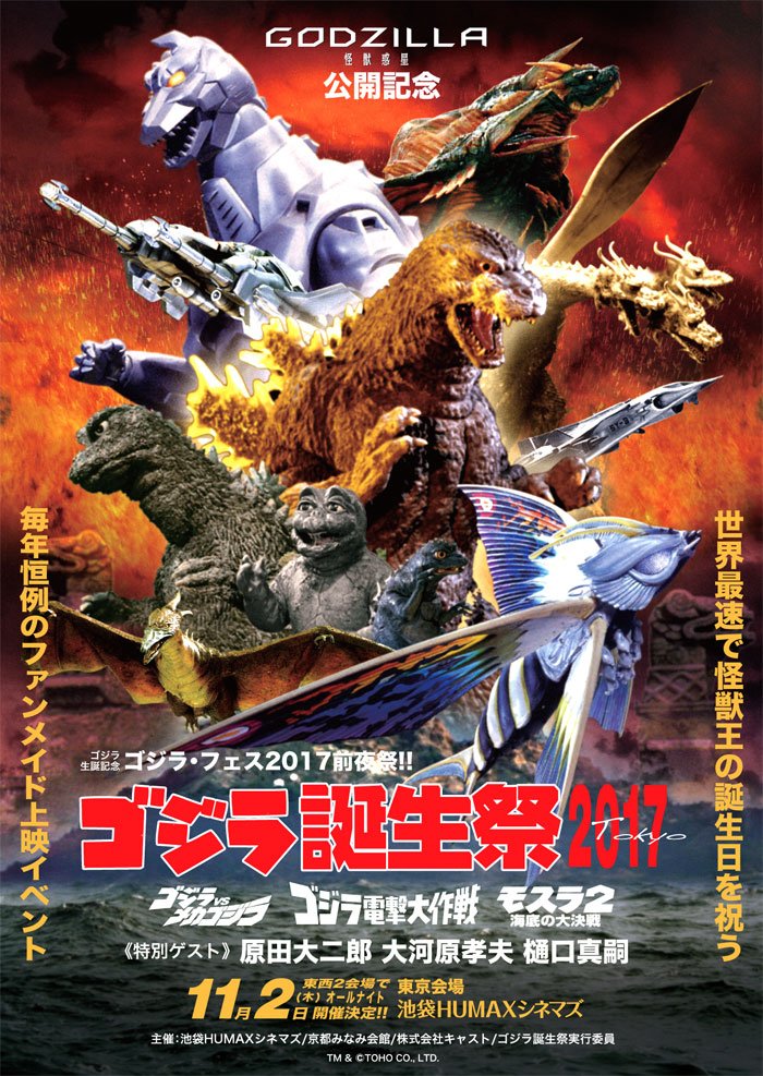 ソーの弟ロキは相変わらずお上品な裏切りキャラだし、ヘラはなぜか腰をくねらせてやってくる。個人的には髪を下したほうがいい。落とし前のつけ方もどことなく間抜けだ。本当は大変なことが起こってるんだけど、それを感じさせない。みんな陽気でパワフル。でもまた次でまじめになるのかな、そんな思いで映画館を出た。今年はアメコミ映画が多かったけど、どれも良作ぞろい、今回は特に傑作。そして最後の最後にジャスティスリーグがやってくる。 今年も恒例、ゴジラ誕生祭2017。怪獣王のお誕生日を東京と京都で祝おうというこのイベントも今年で三回目。いや、東京はもう少し早いのか。そういや、いつもゴジラ誕生祭の時はウルトライベントと重なって大盛況だったなあ。去年はウルトラマンガイアのイベントだったなあ、今年はウルトラがないので落ち着いた感じなるのかな。