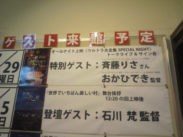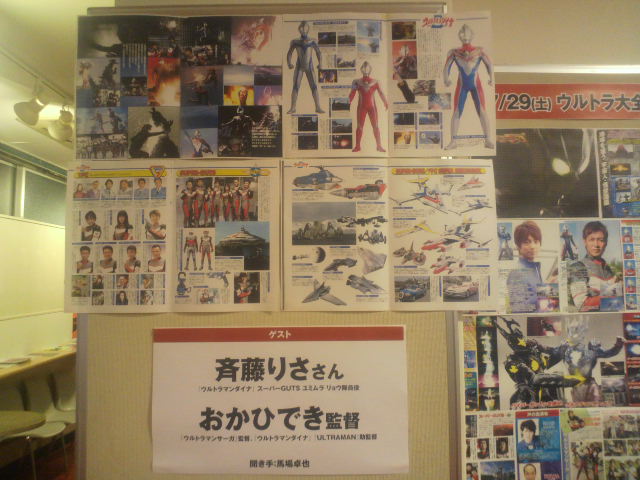 と、こんなことを書くとまるで終わってしまったかのように思われますが、もうちょっとだけ続くのです。なら書くな。いや、覚えている間に書いておこう。9月のウルトラマンAイベントから始まり、いよいよ来月でラスト。そして先日はアベユーイチ監督の興奮冷めやらぬまま、ウルトラ大全集初のオールナイトイベント『ウルトラ大全集special night』へ。 ゲストは『ウルトラマンダイナ』ユミムラ・リョウ隊員役の斎藤りささんに『ウルトラマンサーガ』のおかひでき監督。おか監督とはその前日ババジラジオのゲストにも来ていただき、ウルトラ以外の怪獣話で大いに語っていただきました。