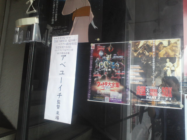 そして翌日も京都。恒例ウルトラ大全集のトークショー司会です。今回のゲストはヒジカタ隊長こと宍戸開さん。一体どんな人だろう、うまくお話しできるかな、というのはいつも思うことで、会ってみればみんないい人ばかりでした。今回の宍戸さんもとてもお話上手で、本番ぎりぎりまで映画の話で盛り上がってしまいました。トークショーもウルトラ愛に溢れる内容、お客様も満足していただけたかと思います。ちなみに宍戸さんの好きなウルトラマンは『アストラ』とのこと。持ち出し厳禁がトークの鉄則ですが、あまりにも意外かつ面白かったので、これは例外とさせていただきました。